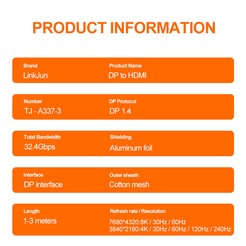 Product Name:TJ-A337-3 8K DP Male to HDMI Male Adapter Cable