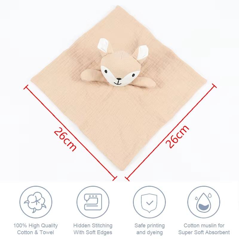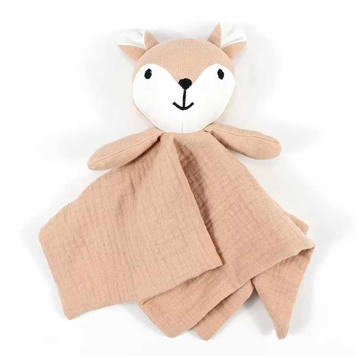 Cotton Muslin Fox Baby Comforter Stuffed Animal Soothing Toy for Teething Kids' Bedding