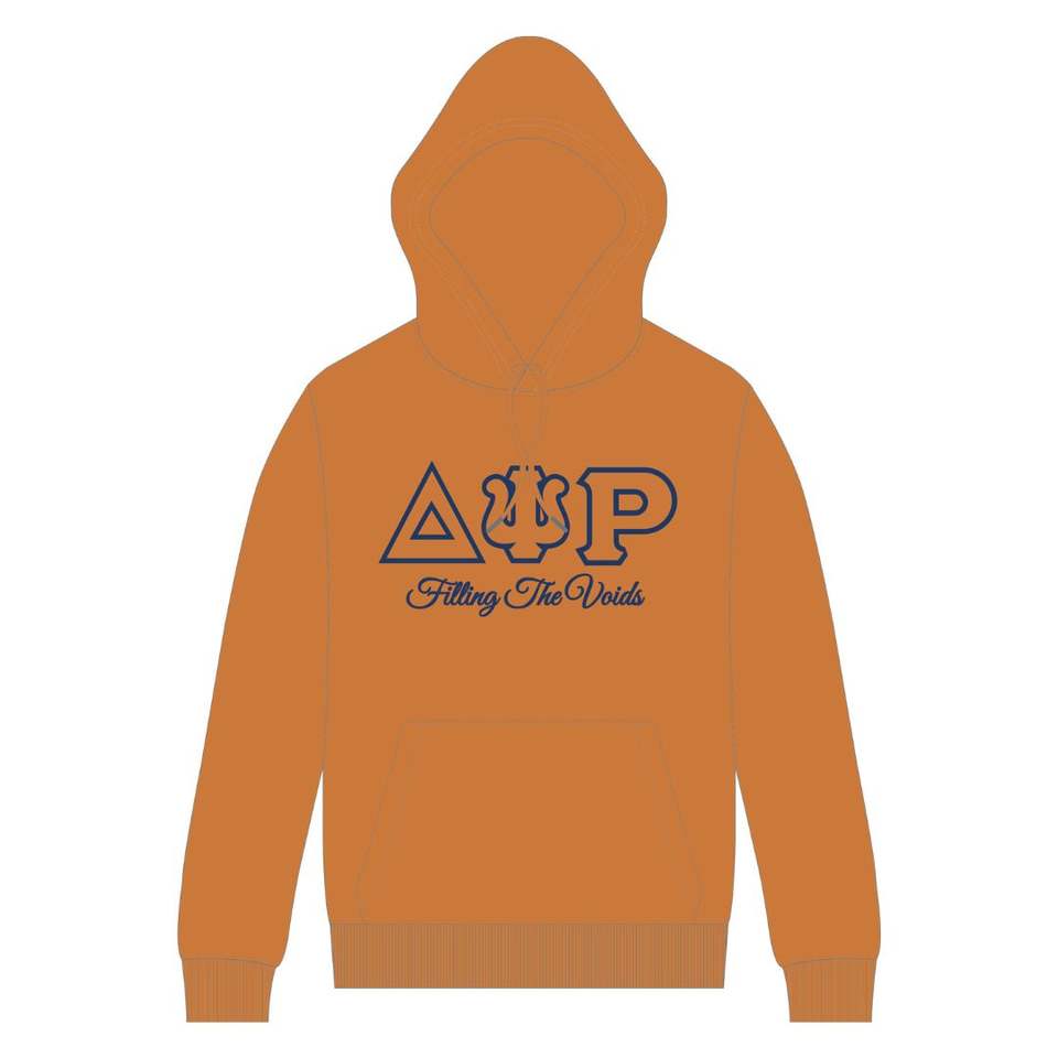 Sweat à capuche en coton poly doré Delta Psi Rho Sorority remplissant les vides vêtements de vie grecs doux et confortable tenue décontracté