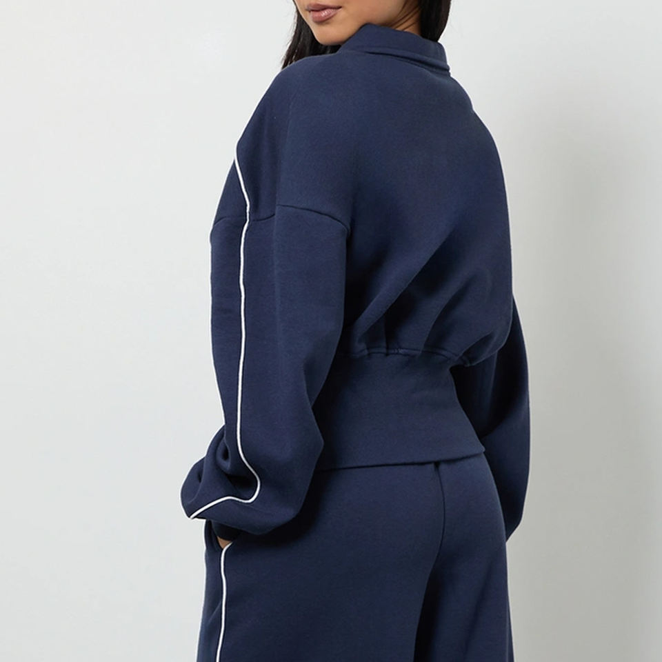 Ensemble de survêtement pour femme 2026 en mélange coton/polyester, confortable, doux et durable, coupe moderne, pantalon de jogging avec col rabattu