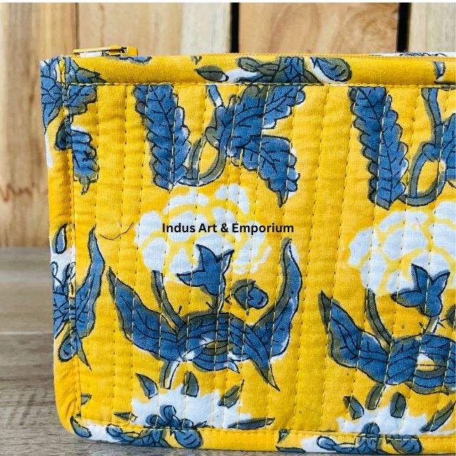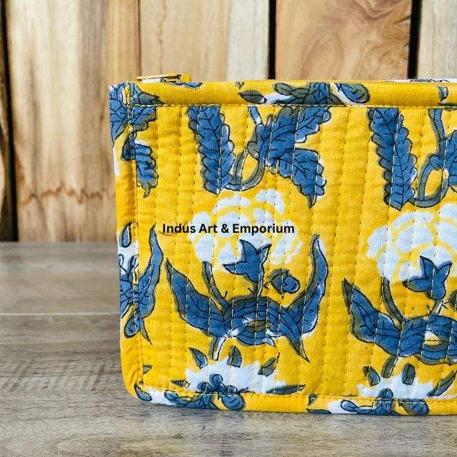 Sac pochette en coton, sac main parfait pour les femmes, pochette à monnaie et argent, sac pochette fait main imprimé en bloc pochette à fermeture éclair matelassée