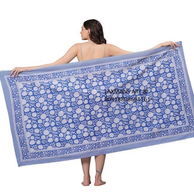 Cotton Printed Leaf Pareo Sarongs Indigo Summer Beach Scarves Handmade Long