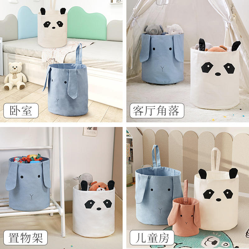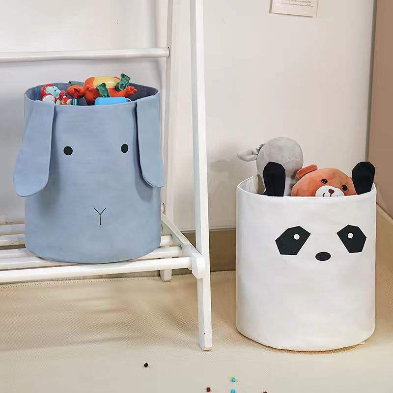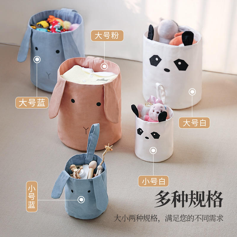 Panier de rangement en coton pour enfants, organisateur de jouets, type rond, 100% tissu en coton, blanc, taille moyenne et petite