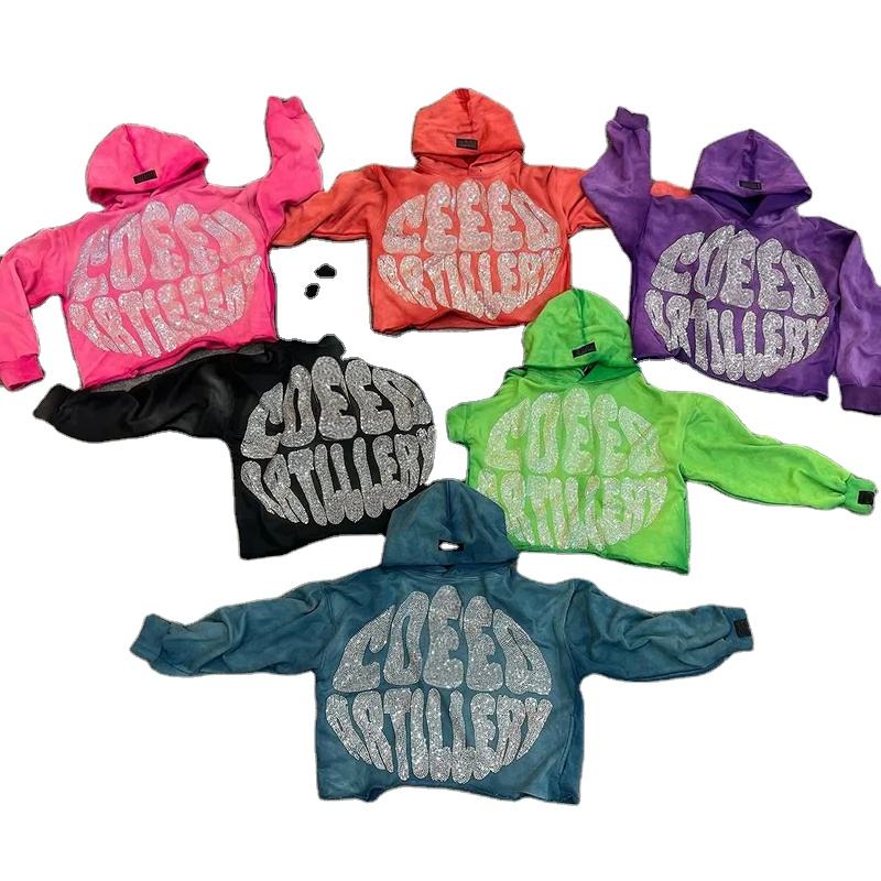 Sweat à capuche en coton avec strass Streetwear Poids lourd pour hommes Fabricant de cordes Sweat à capuche personnalisé avec impression numérique avec strass pour hommes