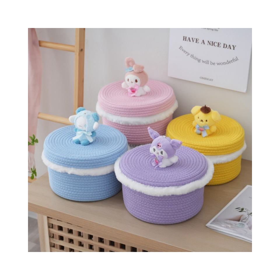 Organisateurs de dessin animé en corde de coton Stockage à domicile Collations de bureau pliantes Cadeaux Seaux Sacs Cartoon Kids Sanrio Melody Panier de rangement