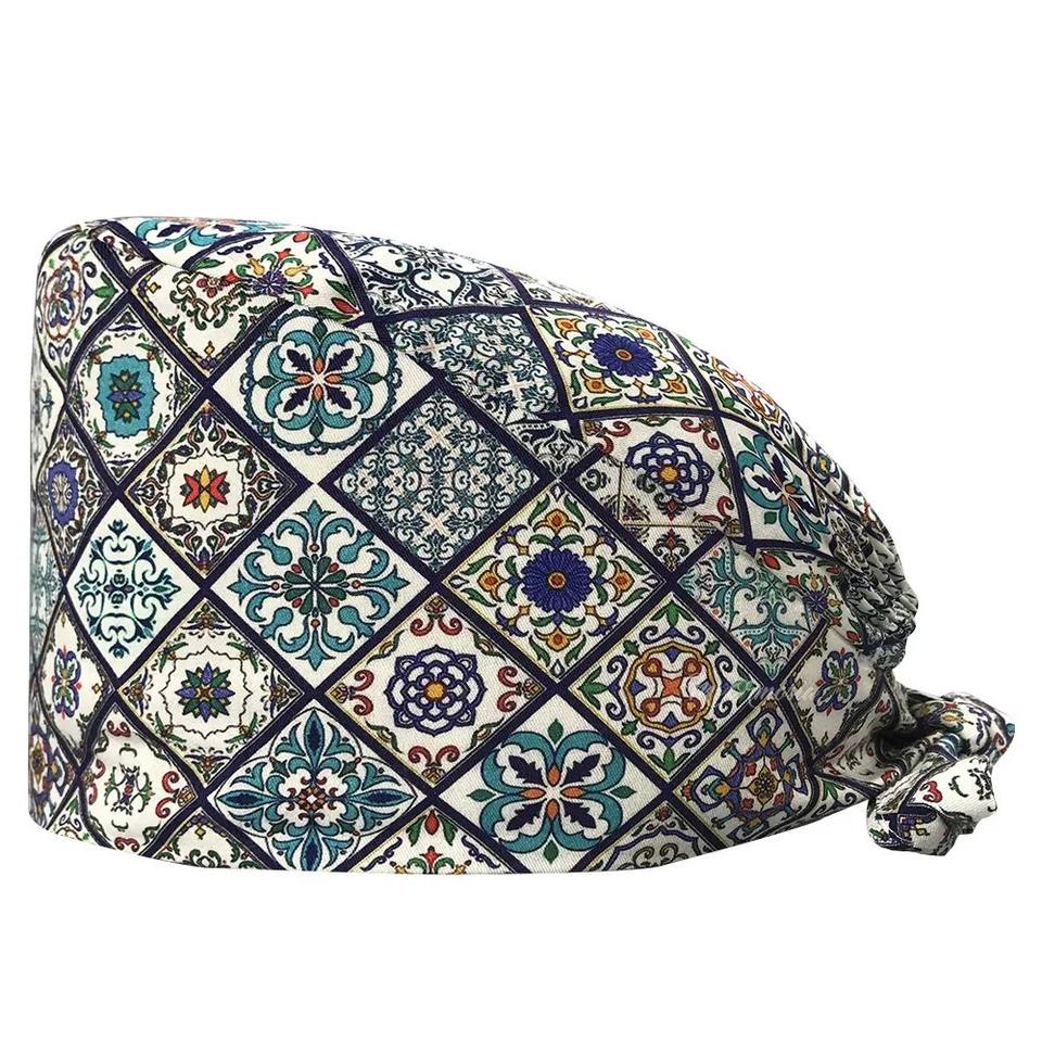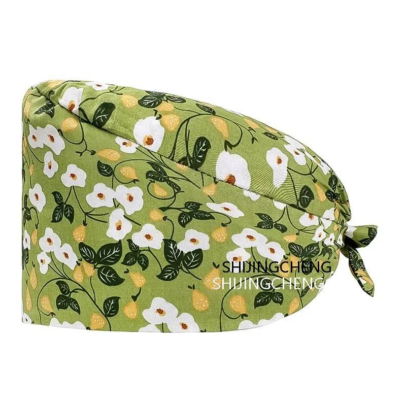 Cotton Scrub Caps Women Men Satin Lined Scrub Cap with Buttons & Sweathand, Unisex Tie-Back Surgical Cap
