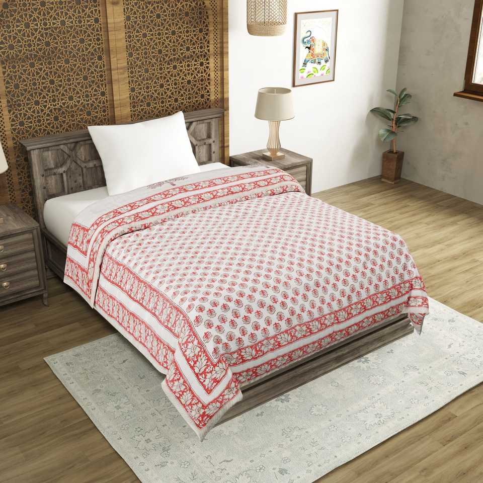 Couette en coton taille unique/bloc de main Rajai imprimé arbre rose Kantha Techniques faites à la main Double (150x225 Cm) pour les hivers légers