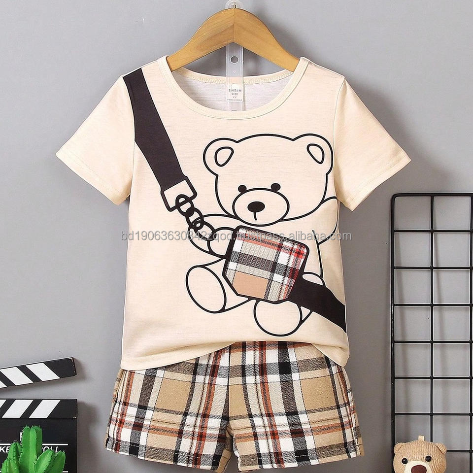 Ensembles d'été pour garçons et filles en tissus doux en coton, fabriqués au Bangladesh, vêtements pour enfants, ensembles 2 pièces, ventes en gros