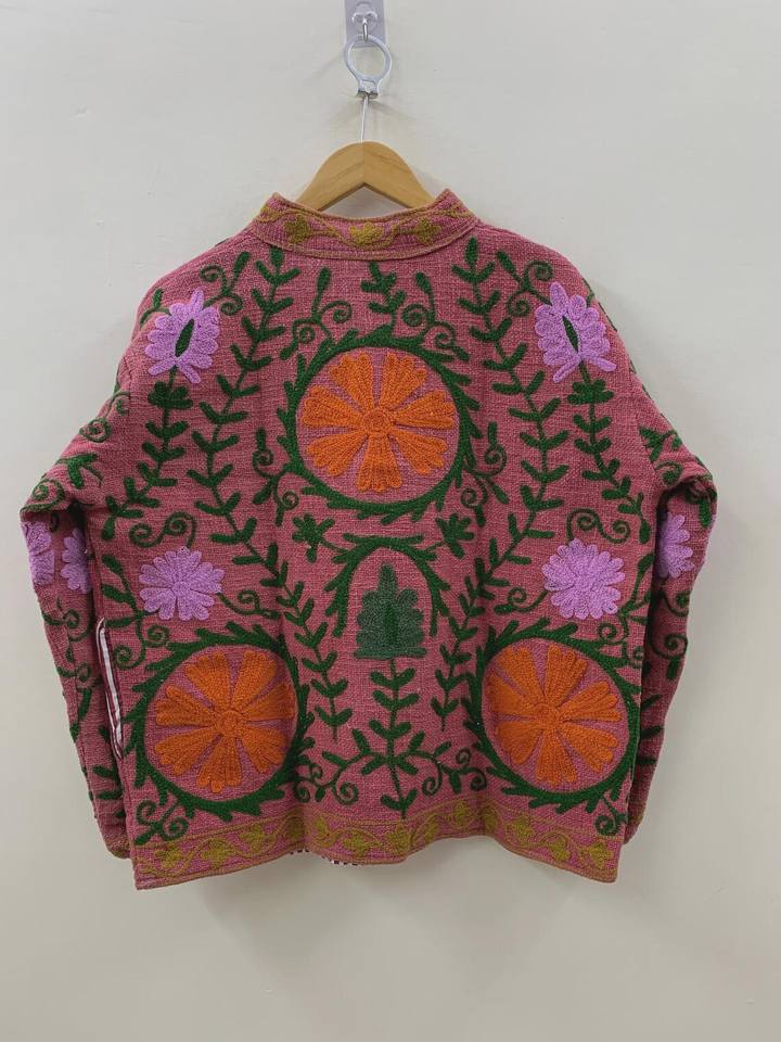 Cotton Suzani Coat Indian Embroidery Jacket Handmade Embroidery Jacket Cotton Quilted Boho Jacket