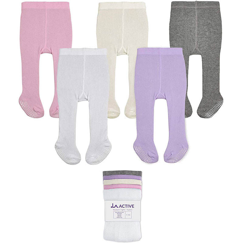 Cotton Tights with Non-Slip Grip Cozy Leggings for Baby Toddlers and Kids Custom Woven Childre Pink Socks: Each pair with single OPP bag 250 pairs in one outer carton.
