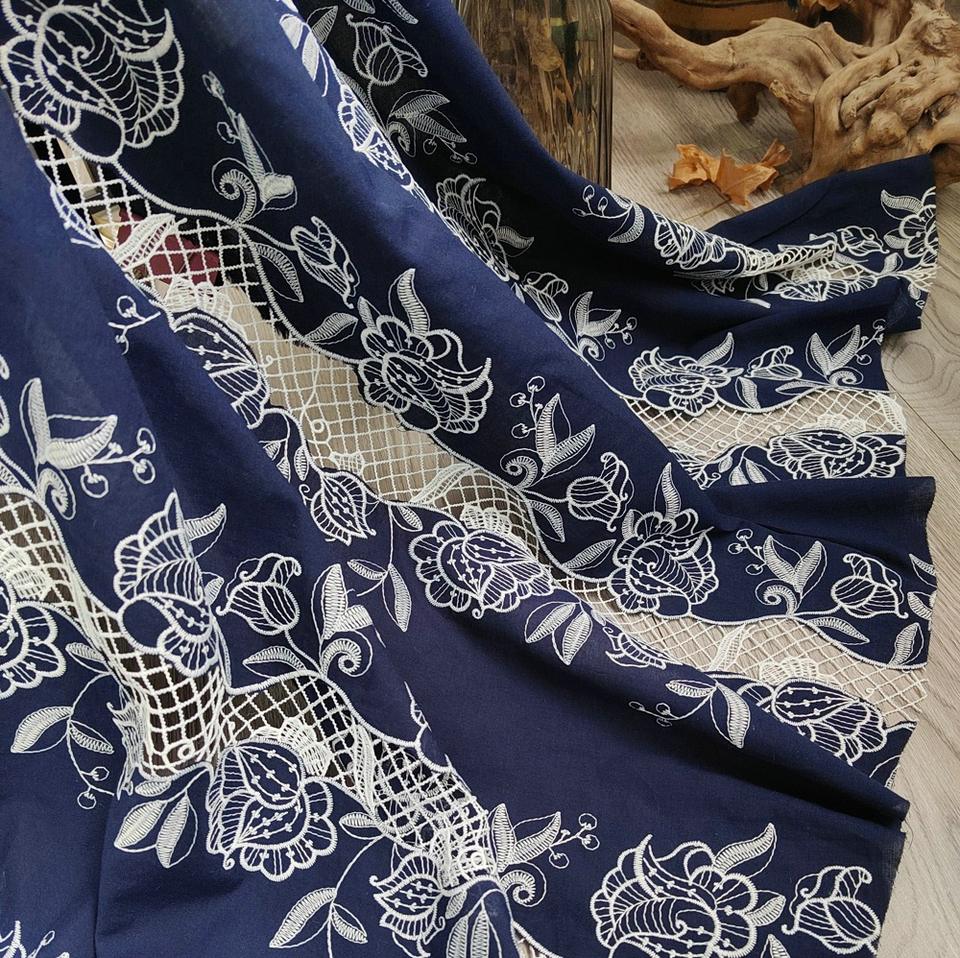 Cotton Voile Border Water-soluble Embroidery Cloth Carved Hole Embroidery Punched Embroidery Fabric for Woman Dress Clothing
