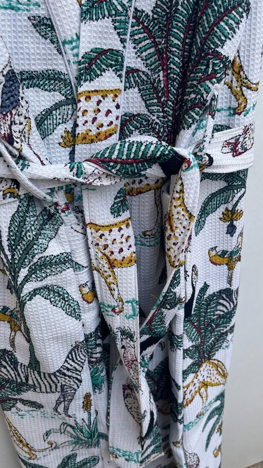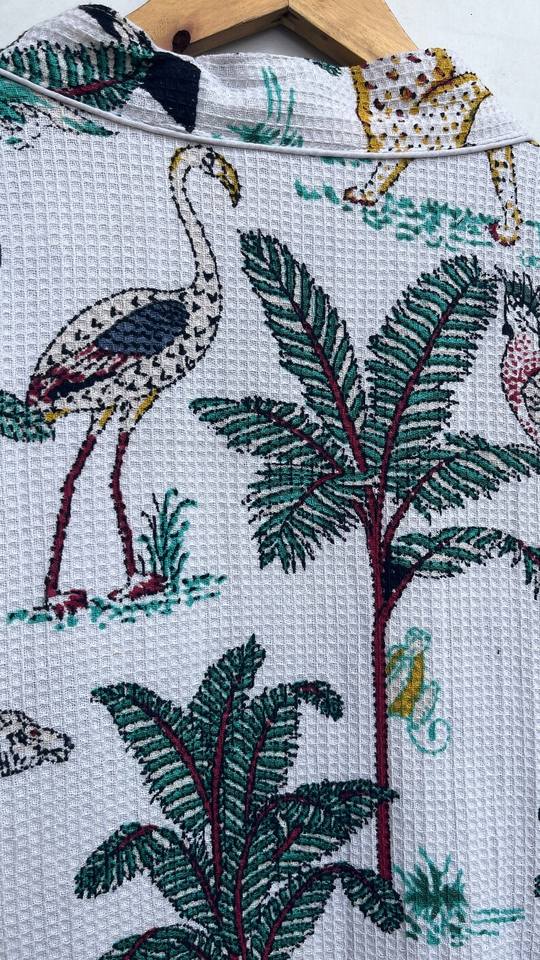 Robe kimono en coton gaufré à imprimé animal, robe de bain spa, vêtements de détente