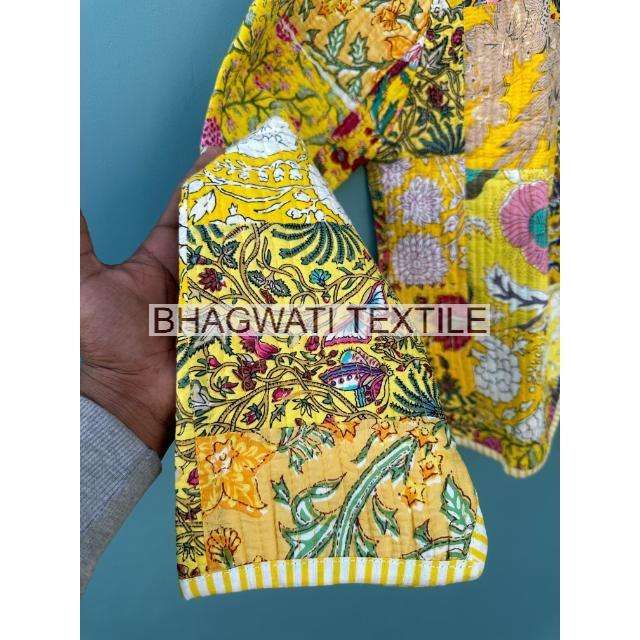 Veste matelassée en coton tissé pour femmes Broderie Patchwork Imprimé Style Boho Manches longues Cadeau de vacances écologique