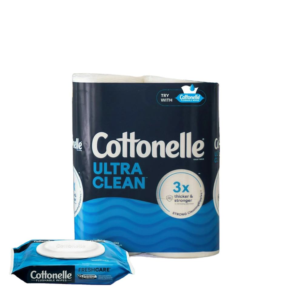Cottonelle Ultra Clean 12 Mega Rolls Toilet Paper Strong 2-3 Ply Flushable Bamboo and Pulp Wet Wipes
