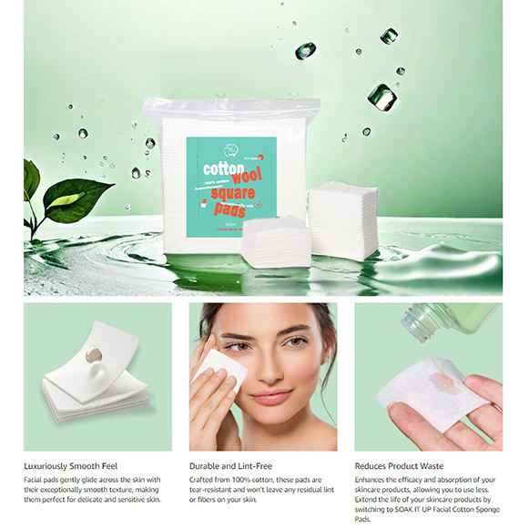 Cottonwhisper Factory Direct, tampons démaquillants carrés jetables écologiques 100% coton, 5x6cm, 3 couches
