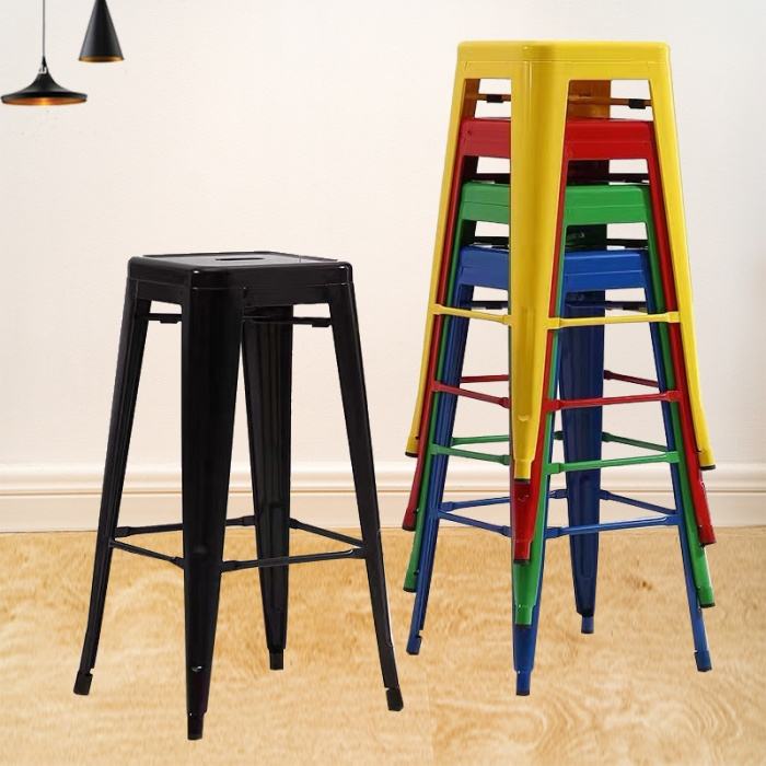 Tabourets de bar de hauteur comptoir Turquoise Fer industriel Chaise empilable Tabourets de bar en métal Noir