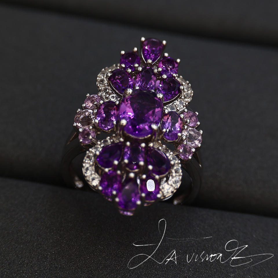 Bague vintage en alliage de la série Counterattack, incrustée d'améthyste naturelle et de saphir blanc synthétique
