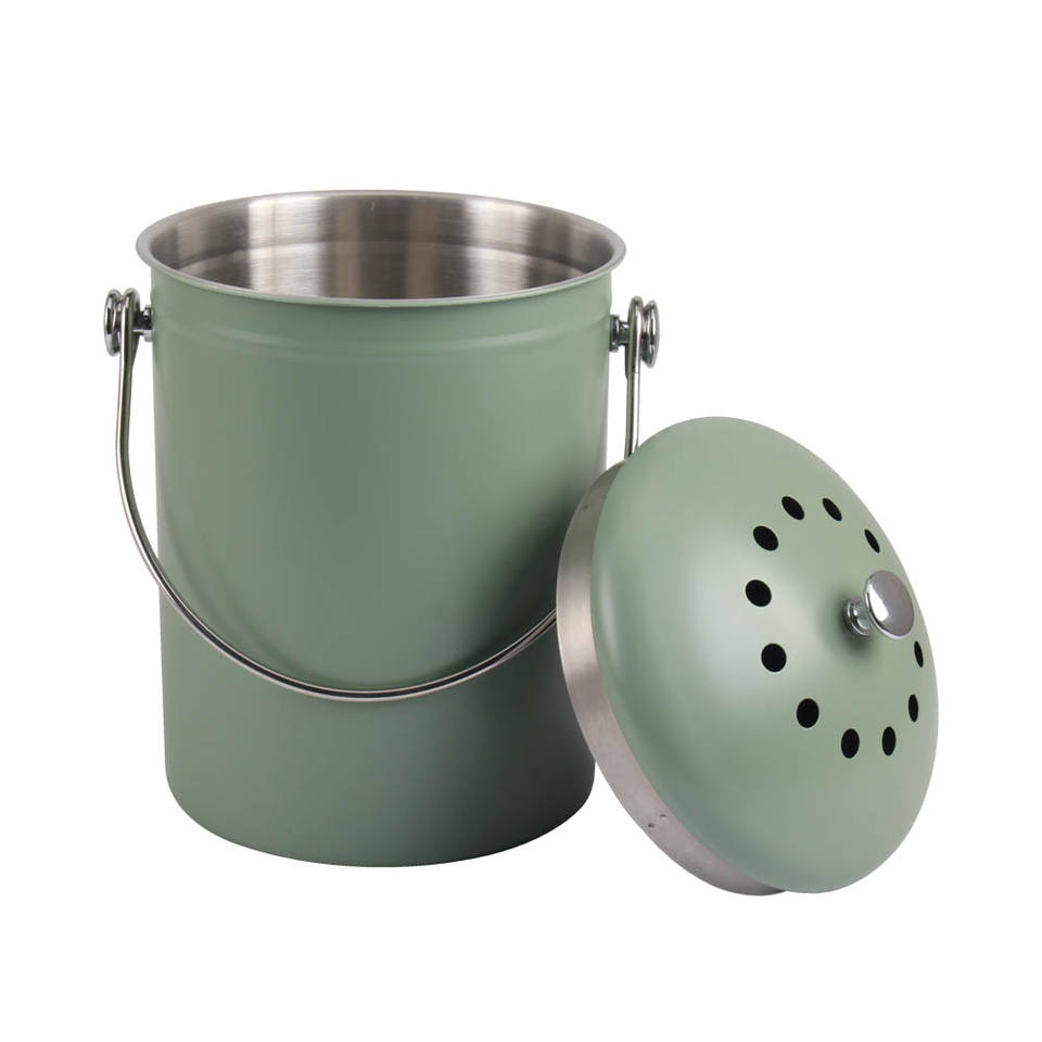 Poubelle à compost de comptoir Comptoir de cuisine 1.3 gallons Poubelle à compost de cuisine en acier inoxydable vert