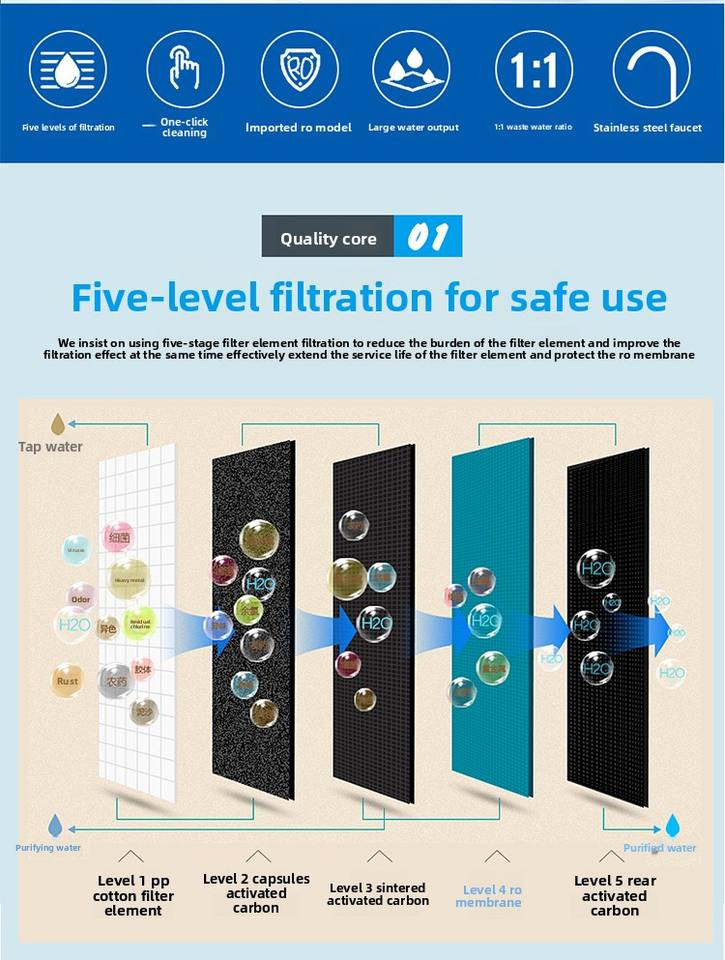 Arrêt automatique, Changer l'indicateur de filtre, Opération facile, Écologique, Auto Nettoyage, TANKLESSCaractéristique