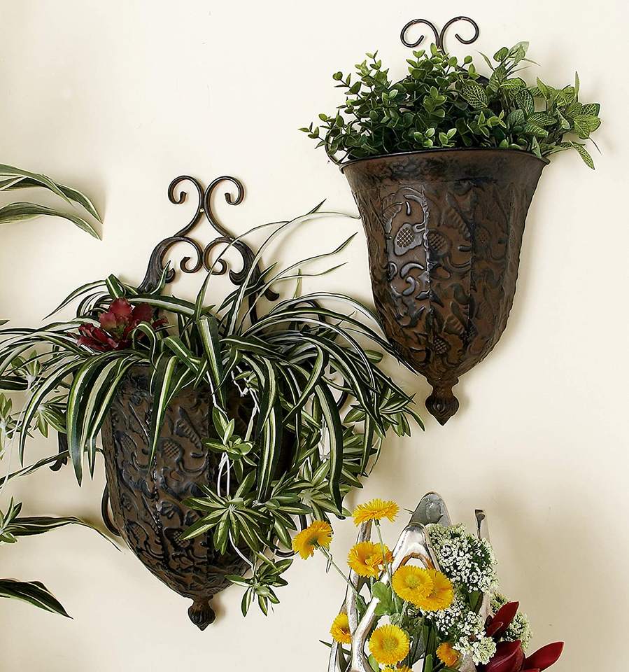 Country Home Decor Farmhouse Metal Wall Planter with Hooks Hanging Vase for Flowers and Plants Pocket Planters Holder