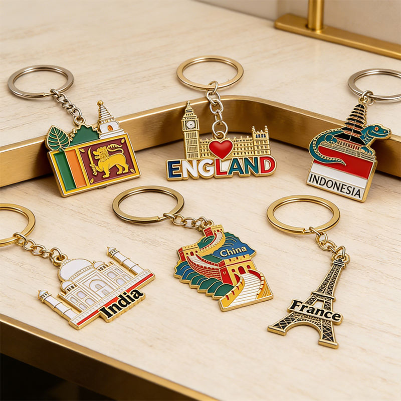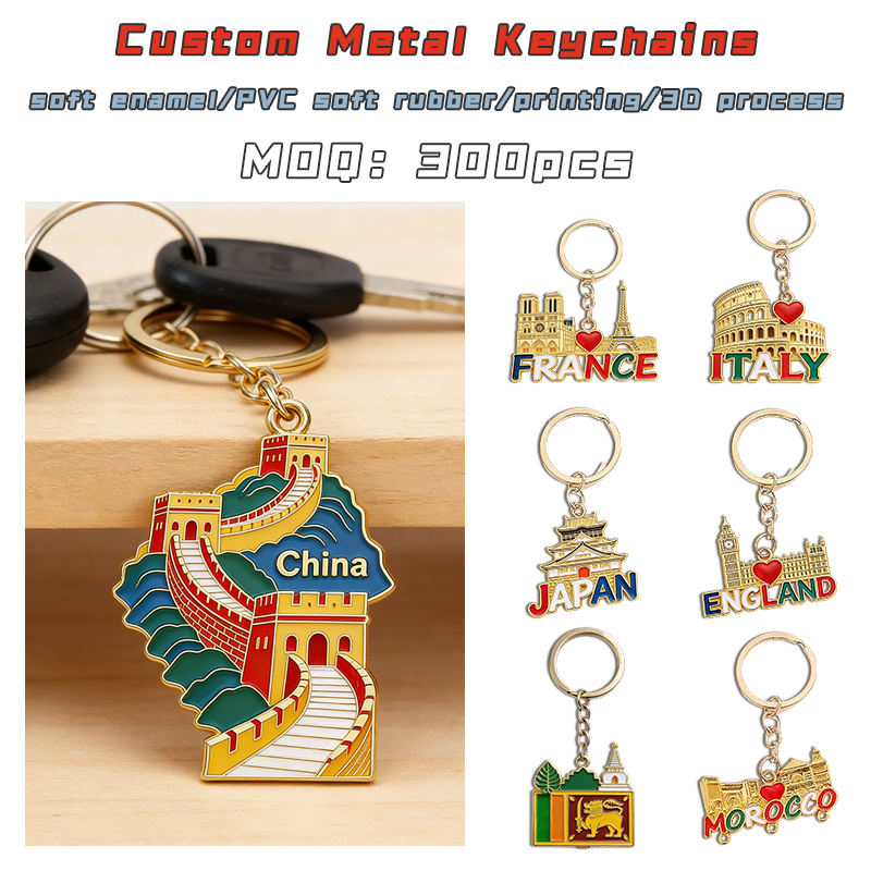 Collection de porte-clés avec noms de pays et monuments emblématiques, ensemble de souvenirs culturels personnalisés, cadeau, articles promotionnels, prix d'usine en gros