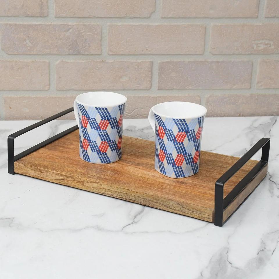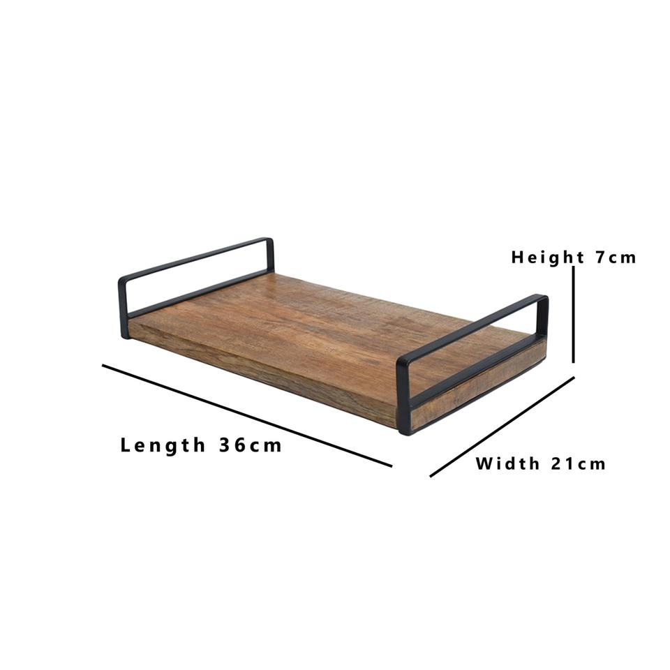 Plateau de service rectangulaire en bois et fer poli, style campagnard, écologique, pour les fêtes