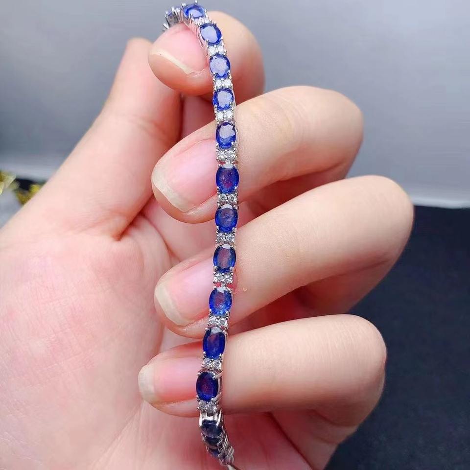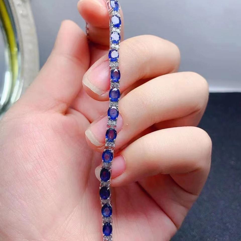 Couple Distance Chunky Bracelet à maillons en saphir naturel en argent sterling 925 pour femme Bracelets classiques plaqués or à un bon prix