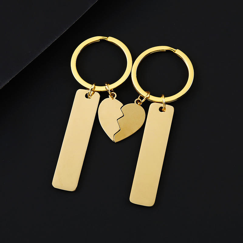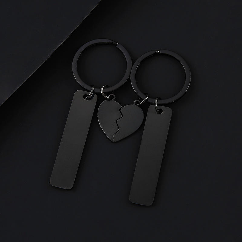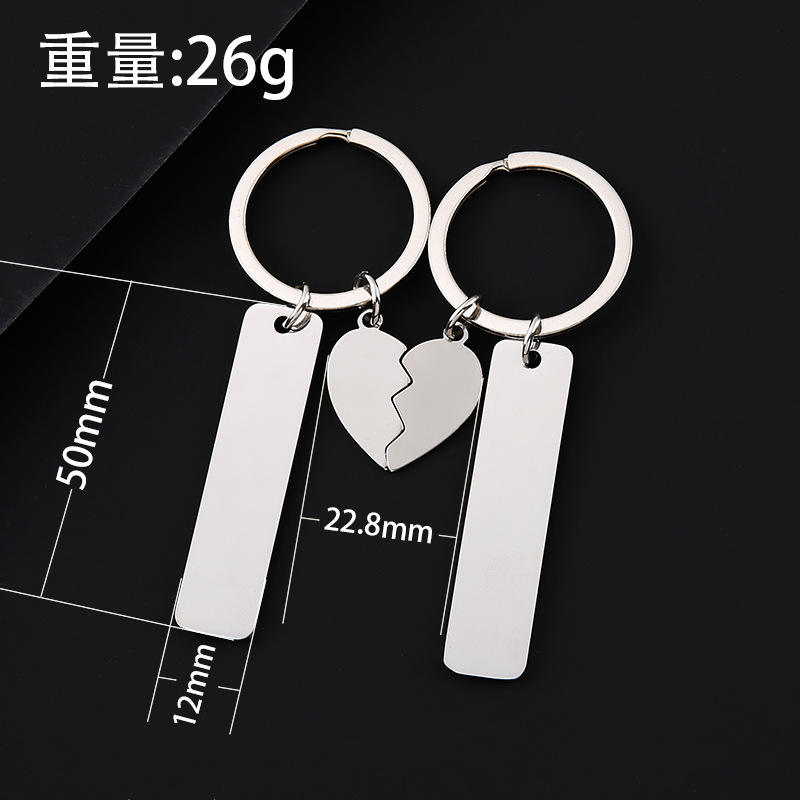 Porte-clés en acier inoxydable pour couple - Demi-cœur et barre longue à personnaliser - Porte-clés en métal pour impression laser UV - Cadeau personnalisé pour amoureux