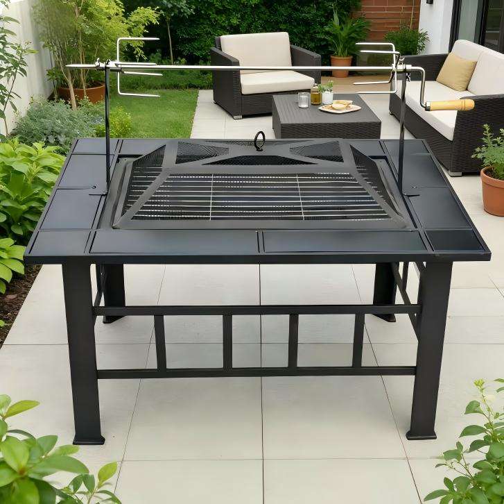 Table de barbecue multifonctionnelle pour jardin avec brasero et foyer extérieur pour la cuisson en plein air