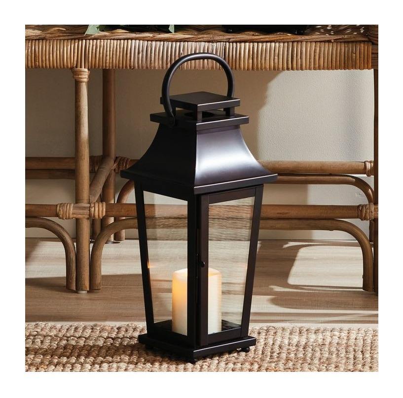 Lanterne en métal pour usage extérieur, pour la décoration de cour, offrant une éclairage d'ambiance avec des détails décoratifs artisanaux.