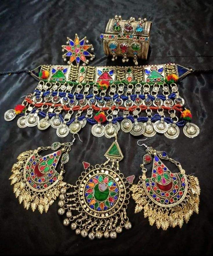 Ensemble de bijoux pour femmes Couture Edition Boho, style afghan tendance, chaînes superposées, cristaux, strass, pour les fêtes, en acier inoxydable