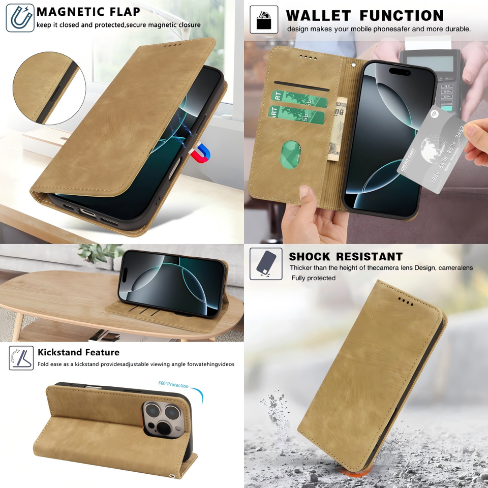 Nouvelle Housse Étui Portefeuille en Cuir PU à Design Simple pour iPhone 16 (Nouveaux Modèles), iPhone 17 Pro Max, 15, 11, 12, 8, 7, 6 Plus, XS, XR, X