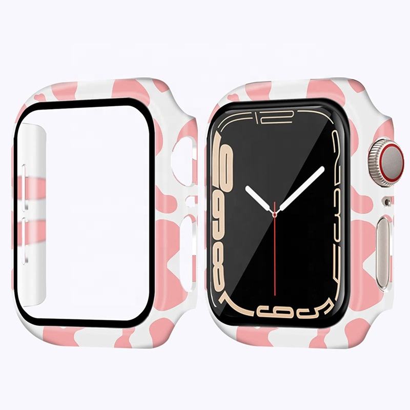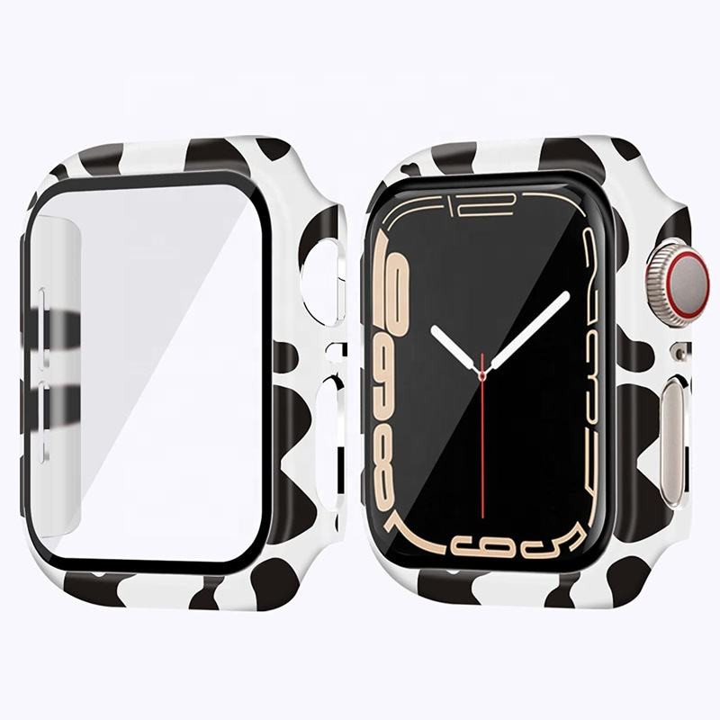 Conception de vache couverture complète pour Apple Watch 8 7 6 5 41mm 45mm 40mm 44mm 38mm 49mm protecteur d'écran pare-chocs imprimé léopard PC + étui en verre