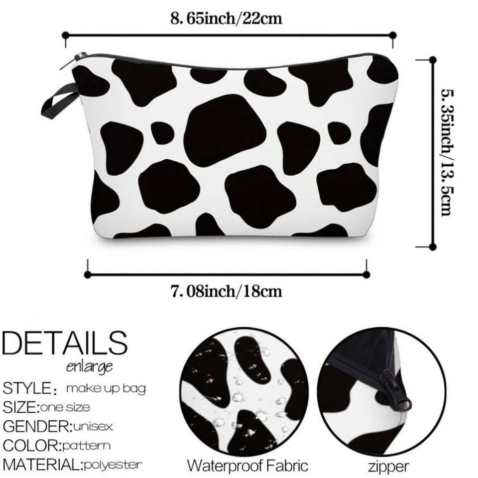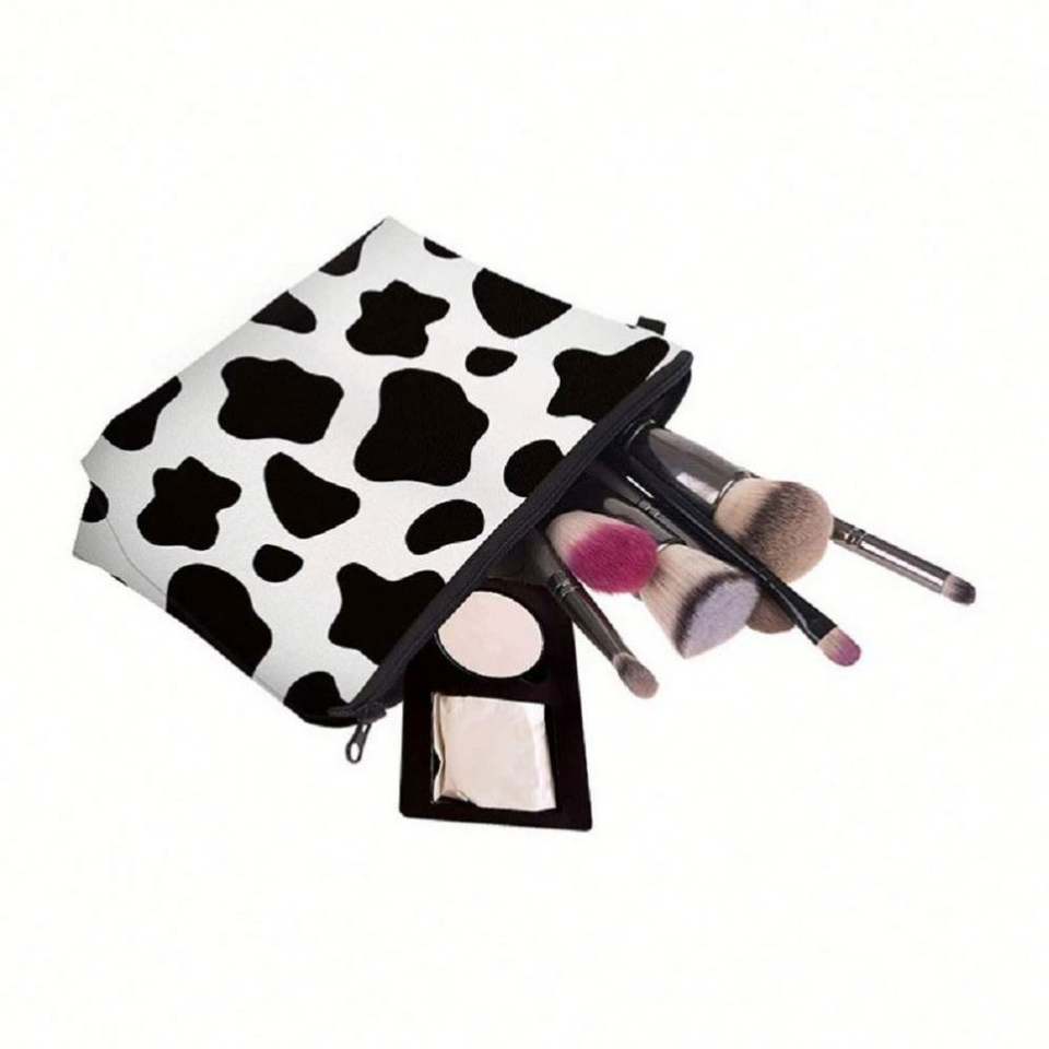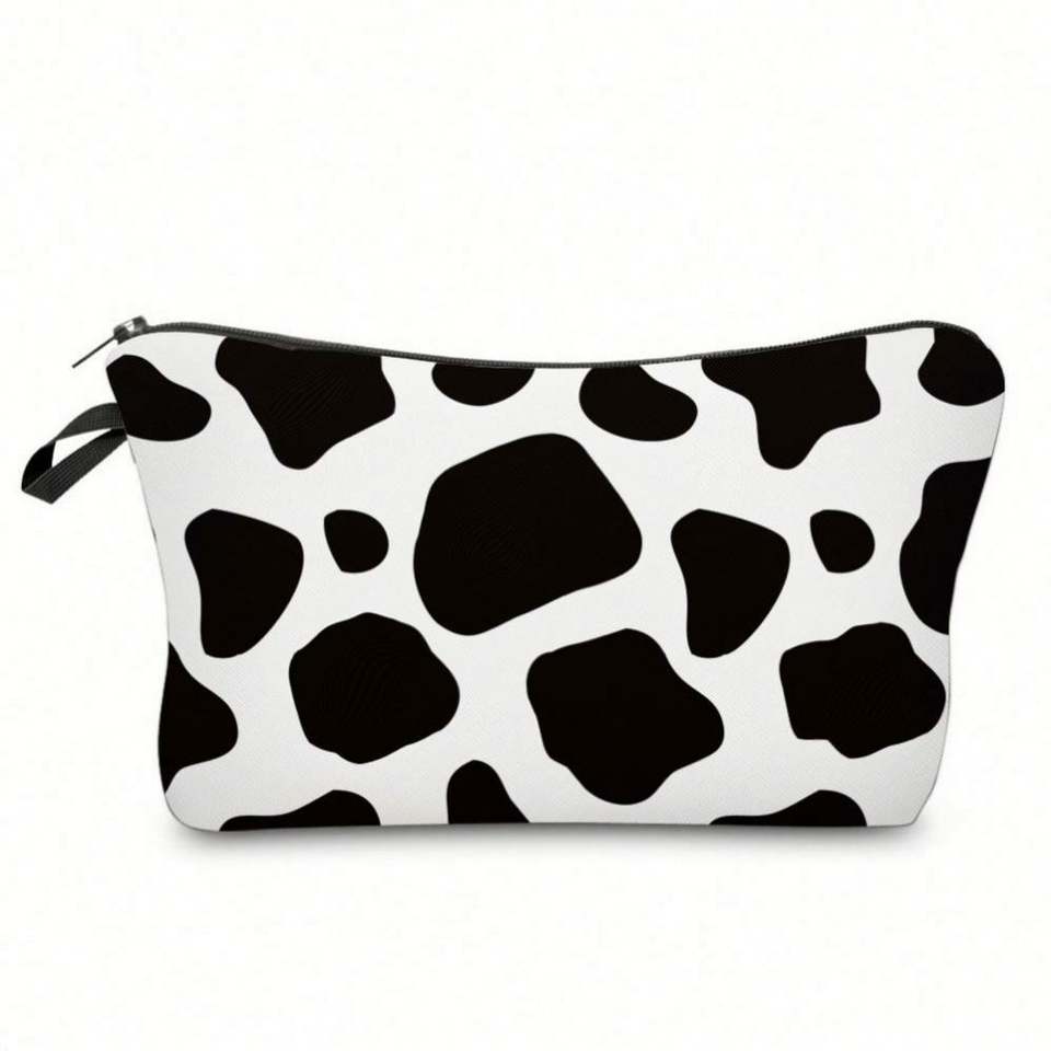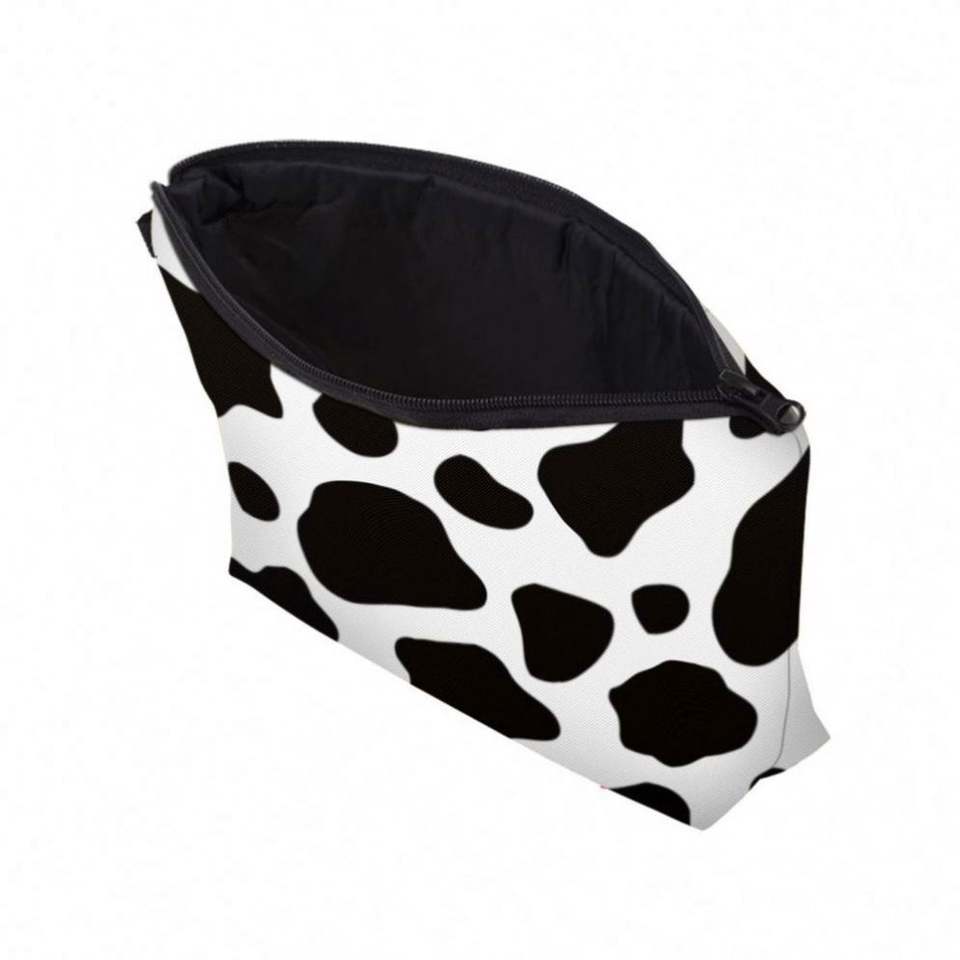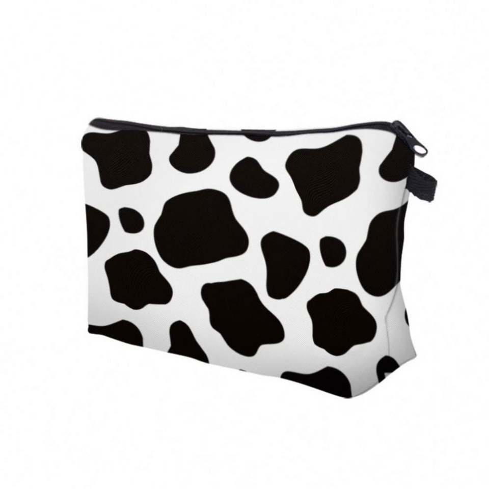 Pochette de maquillage imperméable à imprimé vache, sac de voyage portable pour femmes et filles