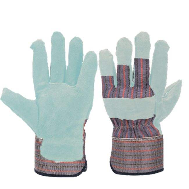 Gants de travail en cuir de vachette pleine fleur avec protection des veines de la paume, dos en coton rayé et manchette de sécurité doublée