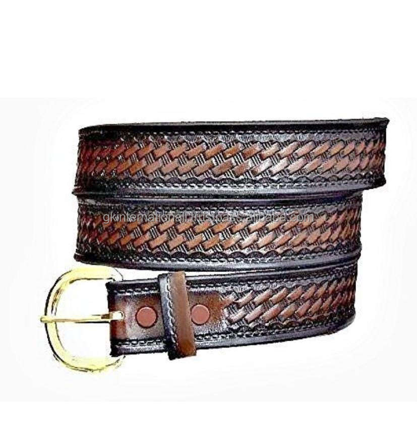 Ceinture de Cowboy en cuir tooled sculpté à la main, boucle de réglage en métal, boucle à ardillon en laiton, toutes les tailles de couleur noir et brun