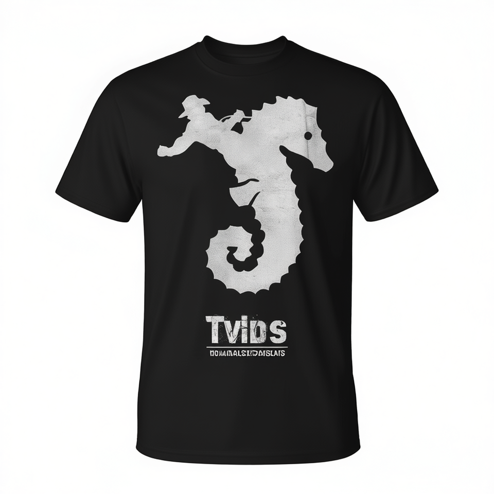 Cowboy Riding Ocean Seahorse T-shirt déchiré noir pour adulte unisexe