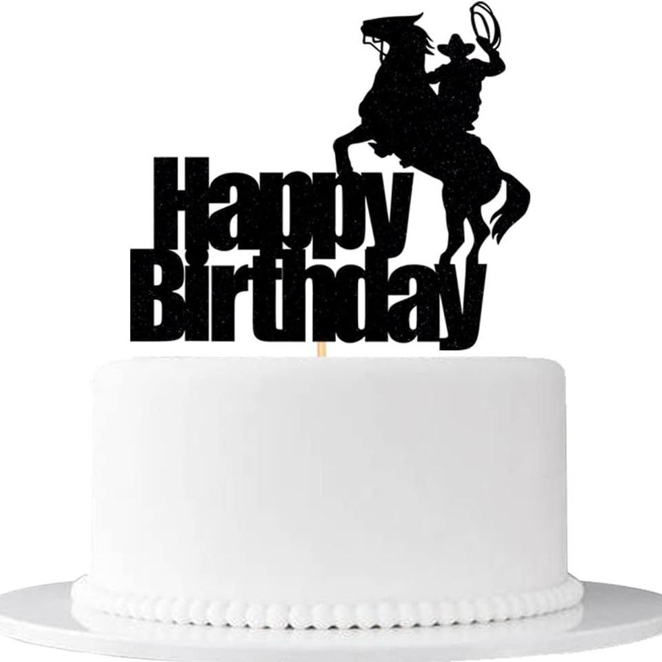 Décoration de gâteau d'anniversaire sur le thème du cow-boy, topper de gâteau de cheval de cow-boy, poudre scintillante, toppers de cupcakes, décoration de gâteau d'anniversaire