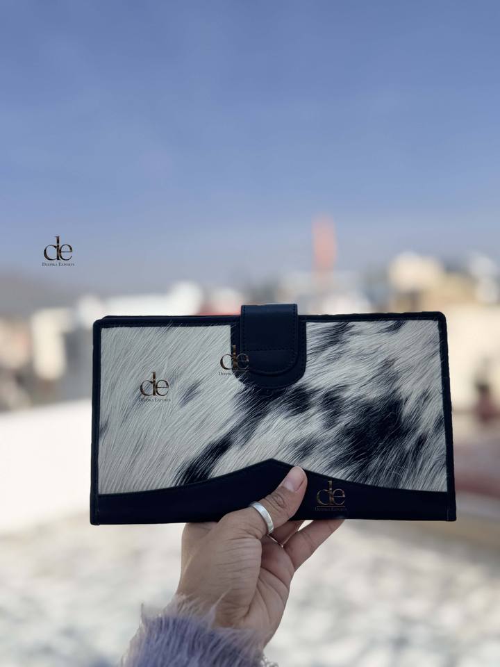 Portefeuille de grande taille en cuir de fourrure de vachette pour femmes sac à main en cuir véritable pochette porte-cartes motif occidental portefeuille en gros