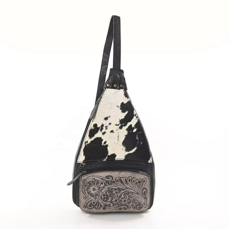 Sac à bandoulière en cuir de vachette style western cowboy pour femme