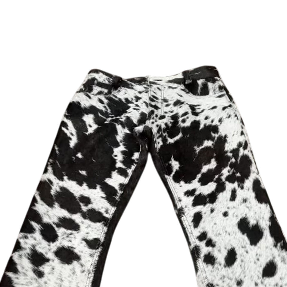 Authentic Western Style Cowhide Leather Pants with Cow Print Low Waist Straight Pattern Nonwoven Weaving Method