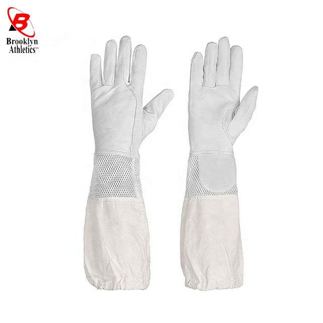 Cuir de vachette apiculture Handschoens confortable Design à manches longues avec toile anti-piqûres pour le travail de maintien des abeilles