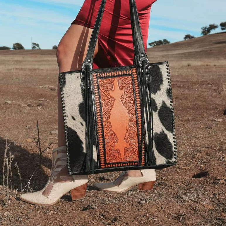Sac à main en cuir de vachette façonné à la main, sac fourre-tout western, sac à main en cuir gravé, porte-documents en cuir