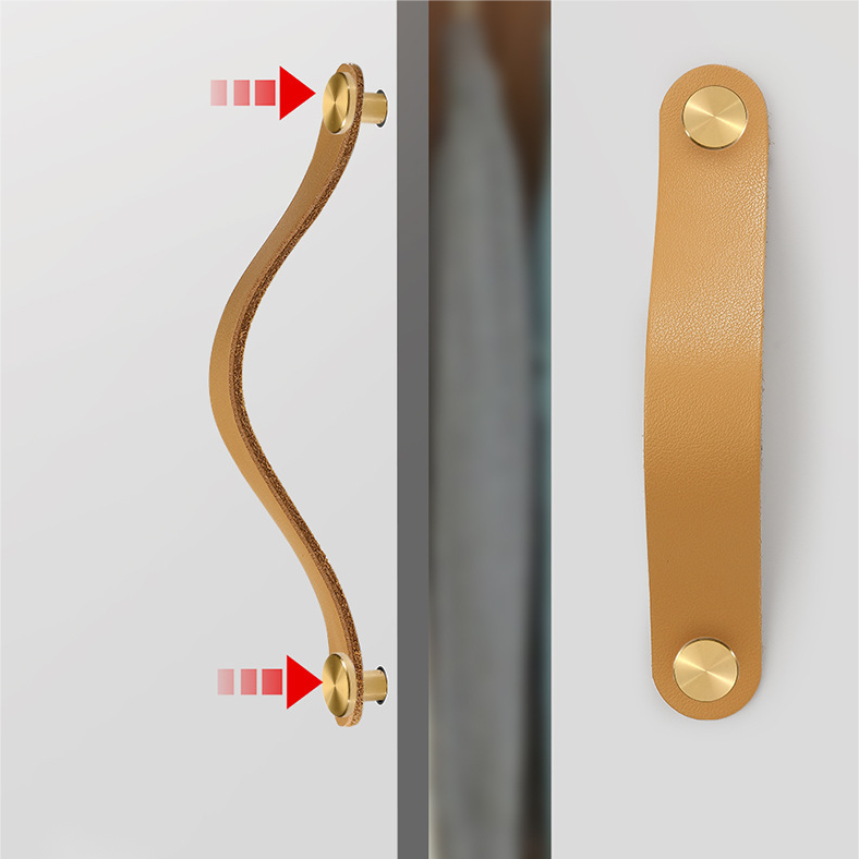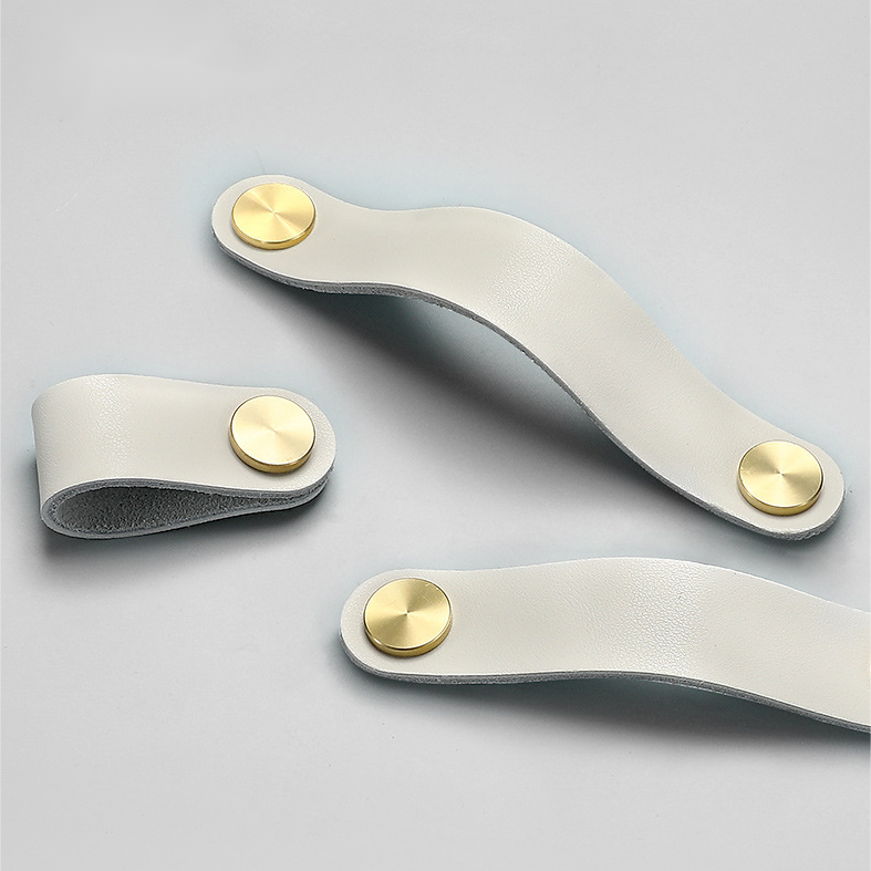 Poignée en cuir de vachette pour meubles, armoires de cuisine, tiroirs, poignées de porte en cuir