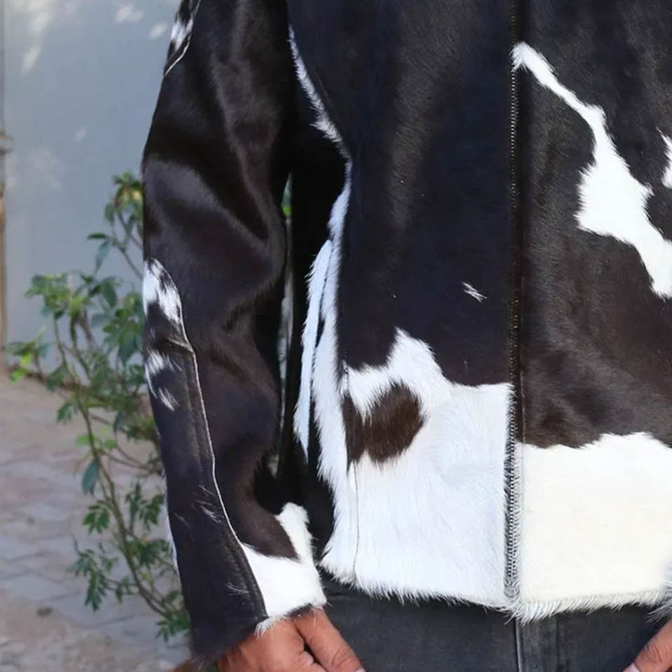 Veste en cuir de vachette pour homme, classique, en cuir de vachette souple, élégante et confortable à porter.
