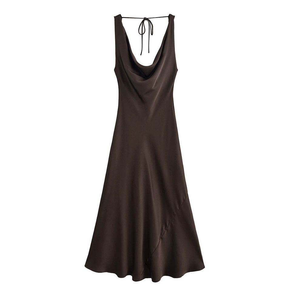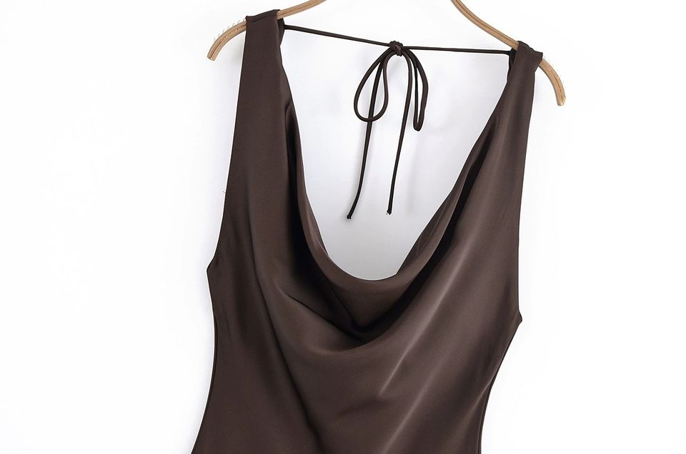 Robe de soirée élégante en satin uni à col bénitier, dos nu, bretelles spaghetti, coupe midi trapèze, pour femme, idéale pour cocktail et soirée