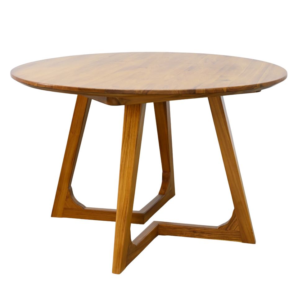 Ensemble de table à manger ronde confortable et tendance d'Indonésie avec un mobilier d'extérieur en teck de 120 cm de diamètre pour restaurant et salle à manger