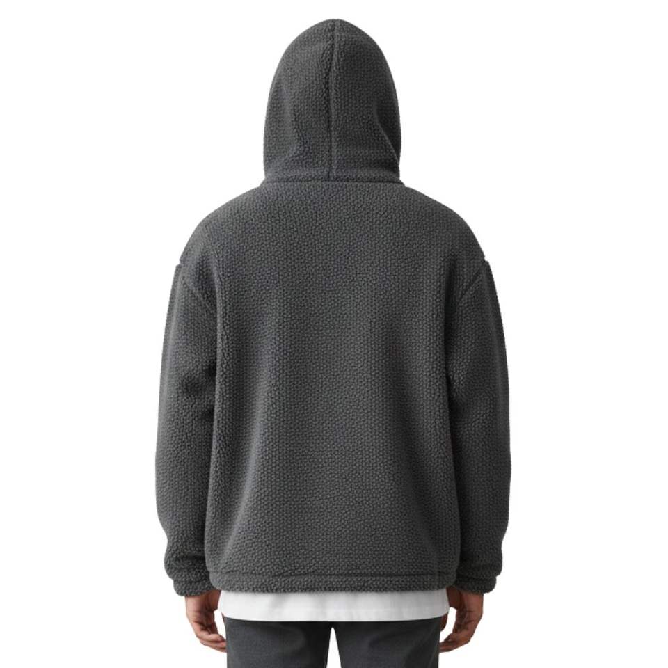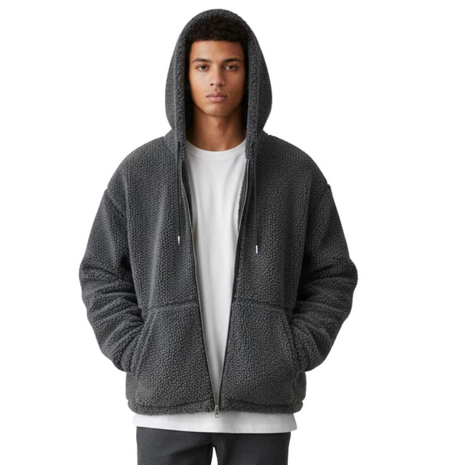 Veste zippée en molleton lavé anthracite avec capuche et poches pour homme – Manteau d'hiver élégant, chaud et confortable