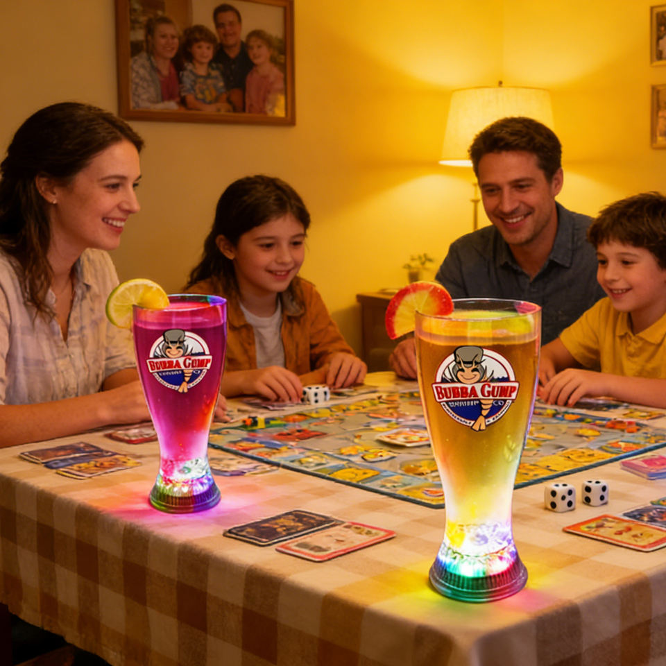 Gobelets lumineux LED Cozy Gathering Glow pour les jeux de famille et les fêtes, créent une ambiance chaleureuse et ajoutent du piment à chaque instant