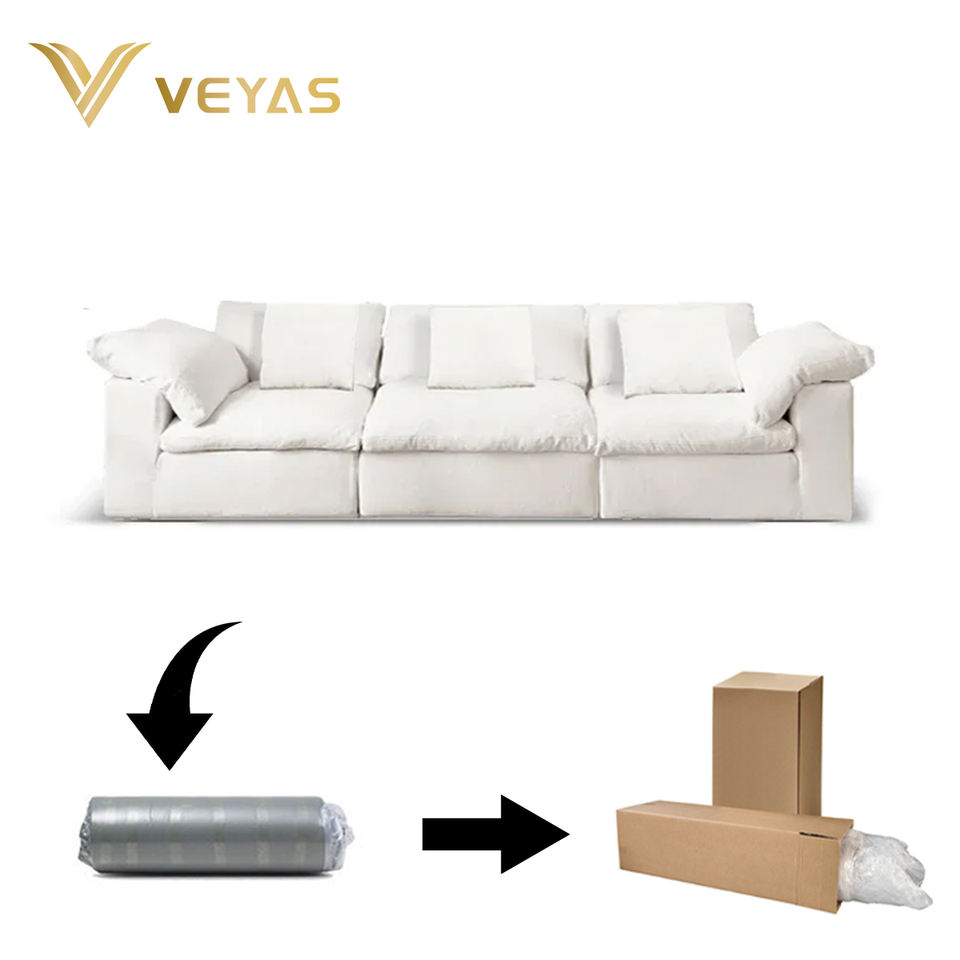 Canapé sectionnel surdimensionné en tissu sherpa blanc cassé, style maison moderne et confortable, deux places, compressé, avec ottoman